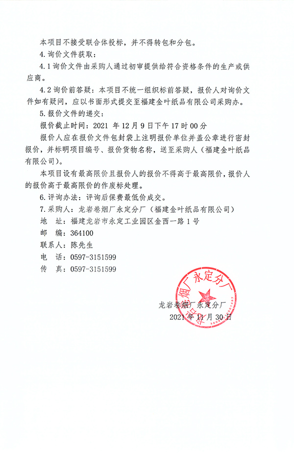 龍巖卷煙廠永定分廠固定資產投保業務服務項目詢價公告