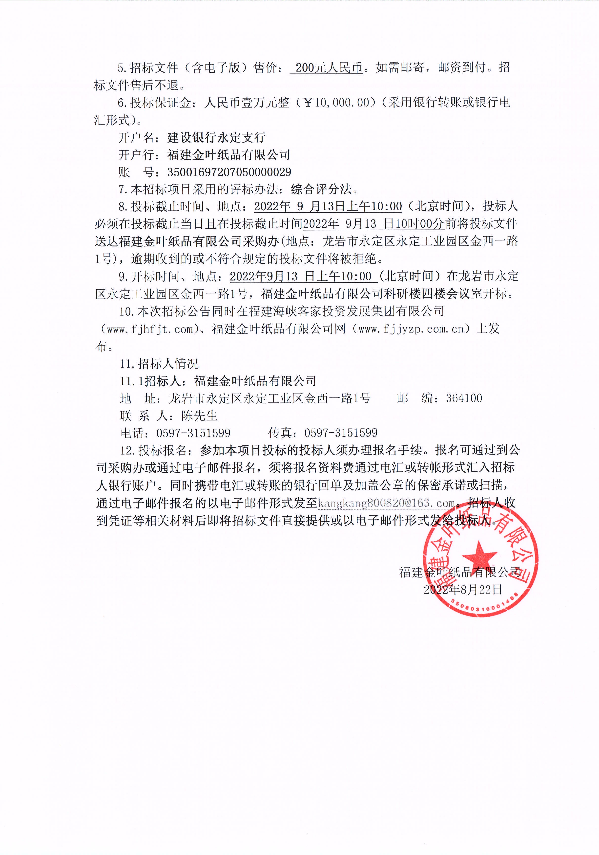 福建金葉紙品有限公司2022-2024年紙箱紙板運(yùn)輸服務(wù)項(xiàng)目招標(biāo)公告